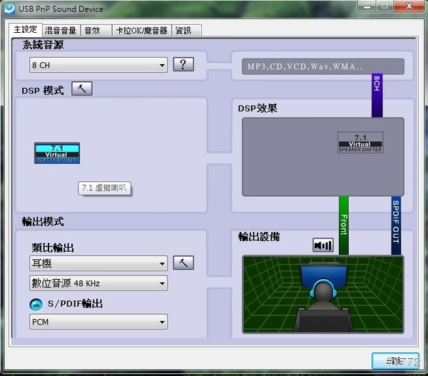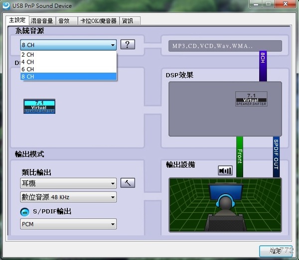 ▲在USB PnP Sound Device設定介面可以選擇多聲道