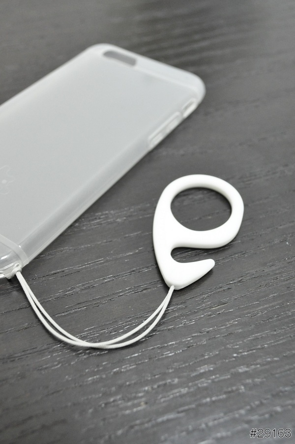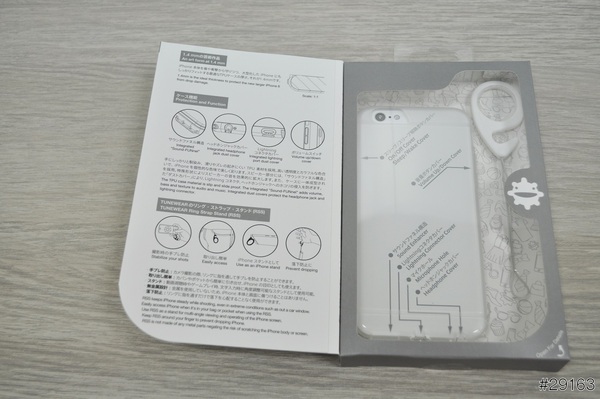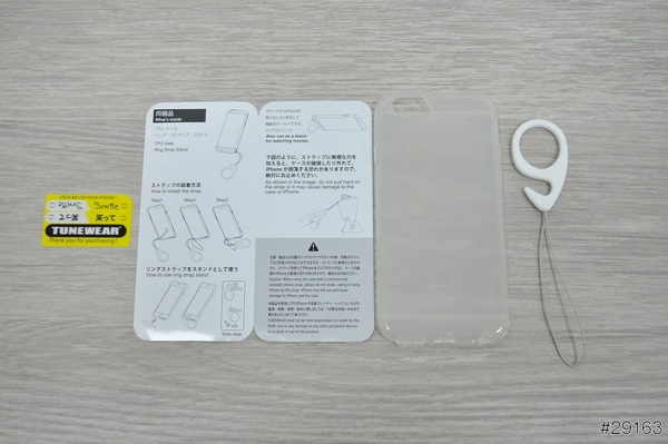 這是包裝內所有的配件,包括保護套本體、一張說明書、一個算是這個品牌很經典的吊環(也可以當立架使用,那個凹槽是讓你把手機塞進去的)、還有一張不知道幹嘛用的貼紙。