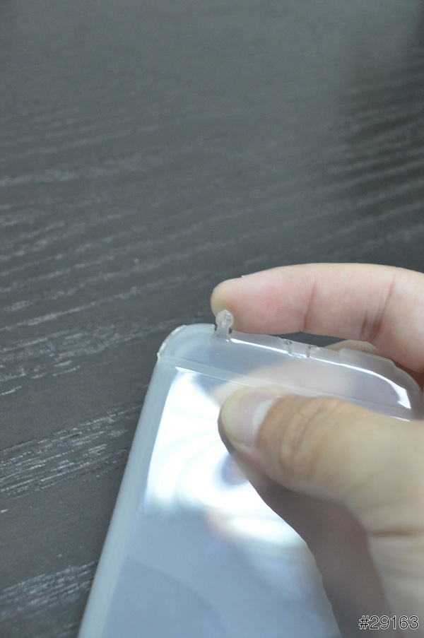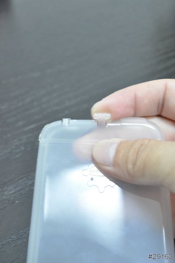 這次的保護套不是全透的,是半透明的。其實這樣的設計蠻見仁見智的,我是覺得全透明的話,感覺會有種廉價感,半透明的感覺會有種神秘的味道。可惡!我的手好肥~~