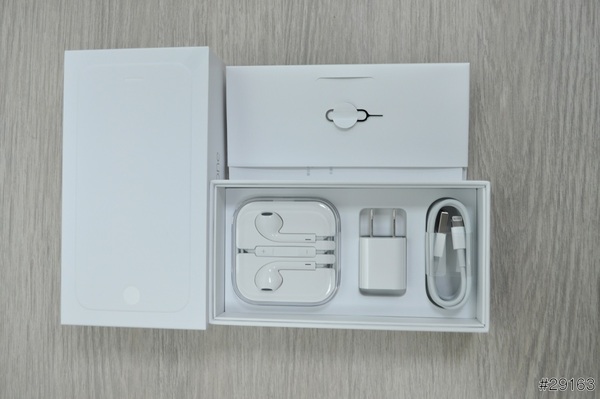 打開囉!我親愛的iPhone 6就靜靜地躺在盒子中,對了!這次的盒子感覺比較淺,上回看到澳洲還是哪裡有人為了開箱給記者看,手機噴出盒子摔到地上的慘劇,所以我在開的時候真的很小心啊!因為我不是那種有錢到可以把手機丟榨汁機或是拿來測試機殼硬不硬的人~~