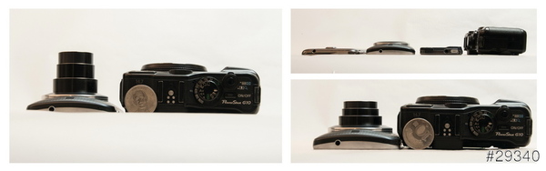 如果開啟相機功能, 這時相機的鏡頭就會伸出來, 這時跟G10相比是差不多的(我也放了一個十元硬幣來做比較), 如果是拉到最長焦段時, 可以看到GALAXY K zoom大約就是兩個十元硬幣的高度了. 不過手持拍照, 這個鏡頭伸縮對於手握並無任何影響的