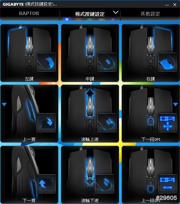 ↑比較意外的是滑鼠上的按鍵都可以隨意更換成其他功能(但須保留一個左鍵),功能鍵除了一般的左鍵、右鍵、上一頁、下一頁,甚至還有複製、貼上…等等功能鍵,還可以設定成鍵盤上的按鍵或巨集。
