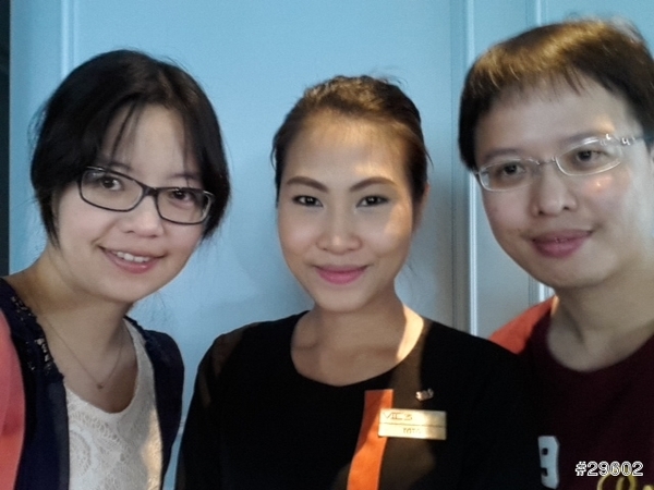 入住的第二天早上,去吃早餐的時候,站在餐廳門口的服務生美眉對我手上這台k zoom很有興趣,問我這台多少萬畫素,其實一開始我愣住啦,進去吃早餐做定位之後馬上先查了起來,然後由我男友跟她說明,順便來張大合照,還交換了Line ID,沒想到我會因為一台手機兼相機認識了一位泰國美眉~(當然這張照片也有Line給她囉~)