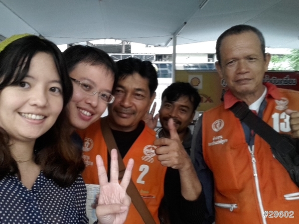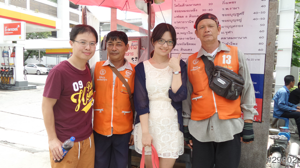 因為那天下完大雷雨之後,路上積水嚴重,司機先生們很好心的免費載我們去BTS站,隔天我們帶著飲料去謝謝他們的時候,請路人幫我們又拍了一張 XD