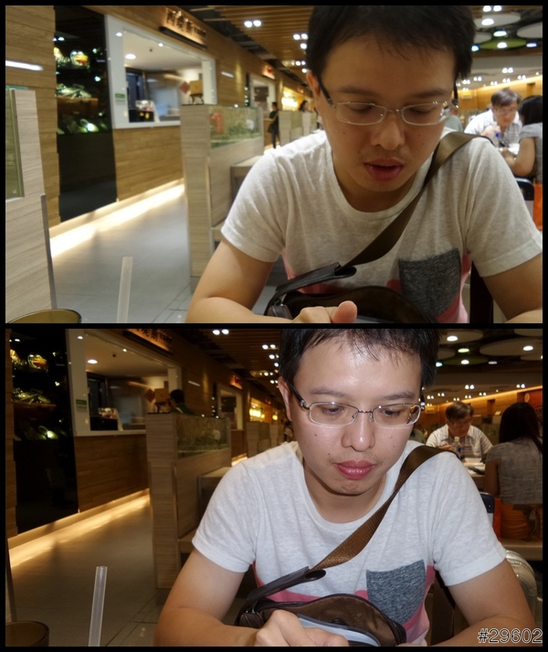 以下兩張照片,上圖是自然光,臉很明顯暗掉了;下圖是開閃燈的效果,人跟相機只有一張飯桌的距離,我原本想說這麼近,出來的顏色一定很死白,結果反而是貼近真實的膚色,所以我覺得這閃燈效果還不賴。