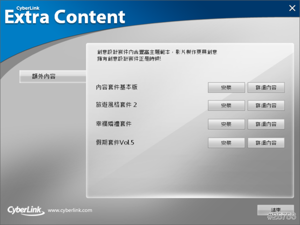在威力導演13旗鑑組合包除了軟體內容大集合之外,還額外送了這幾個套件,大家看圖,我就不打字了。