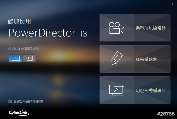 安裝完成後,啟動 PowerDirector 13 後,可以看到一樣有這三個不同的編輯器。之前在介紹 PD 11 的時候,曾經寫過一篇《善用PowerDirector 11 LE【簡易功能編輯器】與【幻燈片編輯器】製作自己的照片影集》,有興趣的可以參考一下,介面應該有所差異,而且我相信 PD 13 的功能更為強大,有機會我應該來寫一寫更新為 PD 13 的版本。