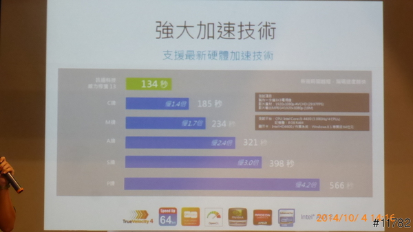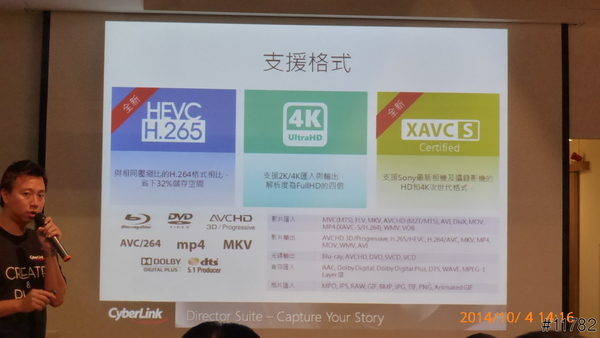 主講者介紹這套軟件的各種功能, 不但支援次世代的H265, 也支援XAVCS, 64bit也沒問題, 甚至還能上雲端. 而且處理速度更是領先全球其他競爭品.
