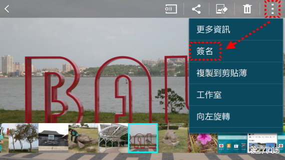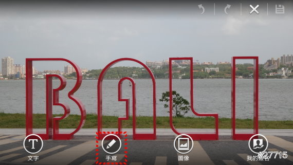 選擇要簽名的照片後,按右上方的功能鍵選擇「簽名」,在選擇「手寫」再把簽名寫上,最後選擇儲存就可以了,是不是超簡單的?