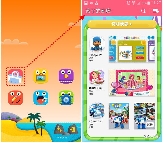 兒童模式也有應用程式商店唷! 裡面都是小朋友的遊戲APP,很多都是免費的。