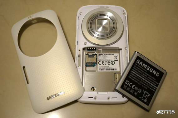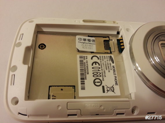 電池拔起來後,就可以找到放sim卡的地方,拿到手機前正好艾倫4G剛辦好,馬上放入Galaxy K zoom來體驗4G的收訊和網路,sim卡第一次放入的時候搞了有點久,因為太緊不好放入。