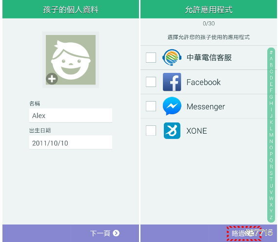 接著可以在系統輸入小朋友的照片、名字和生日,輸入小朋友資料後,會問有沒有應用程式要允許在兒童模式裡顯示。