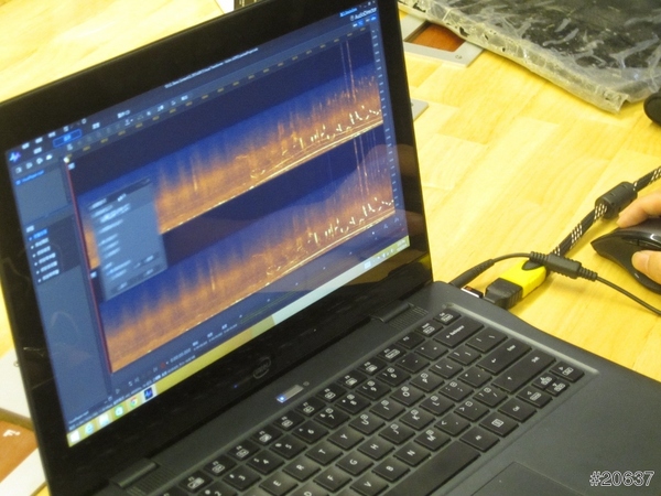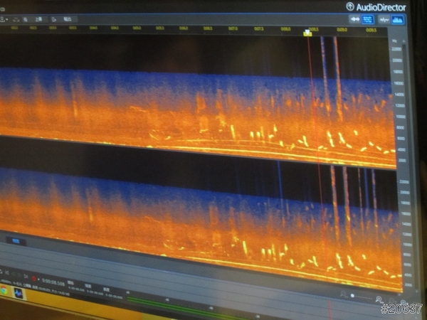 1.去除背景聲音,有一段婚禮的影片,可惜背景有吵雜聲救護車和鳥叫聲,講師示範訊連很厲害的一招,將聲音圖像化,再用類似影像處理的方式將雜音去除...真是太神奇啦!!!