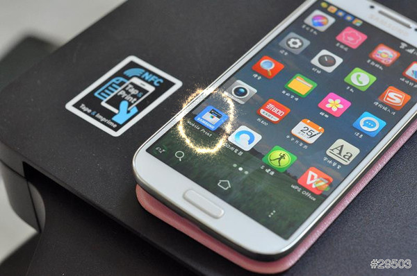 NFC是近場通訊的縮略詞,它主要應用在智慧手機和其他類似設備,能夠在10cm範圍內與同樣擁有NFC功能的設備互相發送和接收無線資料,帶有NFC功能的印表機能夠與支援NFC功能的手機進行列印、傳真、掃描等操