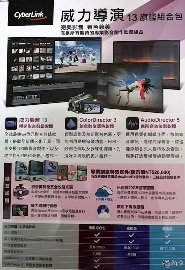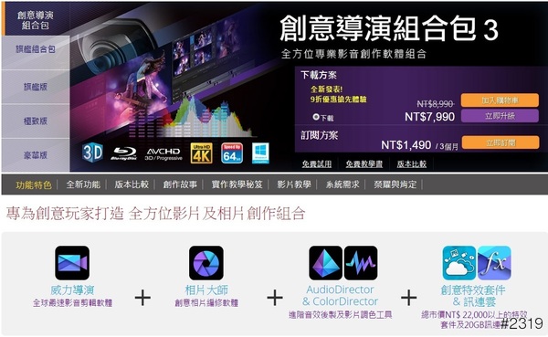 【▼】「訊連科技創意導演家族3旗下精銳「威力導演13」、「相片大師 6」、「AudioDirector 5」以及「ColorDirector 3」四套最新版本的明星軟體介給大家