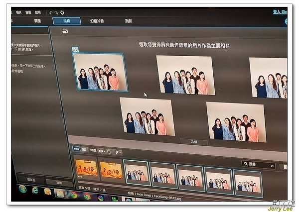 ▲再來介紹的也是拍照常常發生的問題,就是每當大合照時,有些人眼睛可能剛好閉上,就會有NG的照片,這時候也是要多拍幾張,在使用"臉部置換"的功能就可以完成一張完美的合照