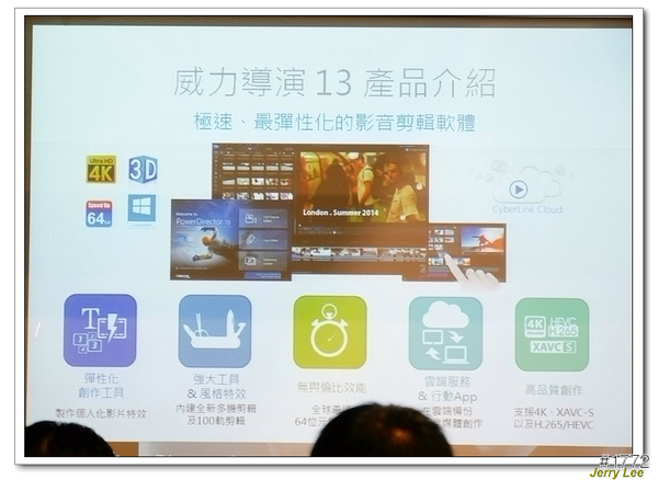 ▲威力導演13推出了"彈性化的工具"、"強大工具與風格特效"、"無與倫比效能"、"雲端服務&行動App"、"高品質創作"各種方面性的服務