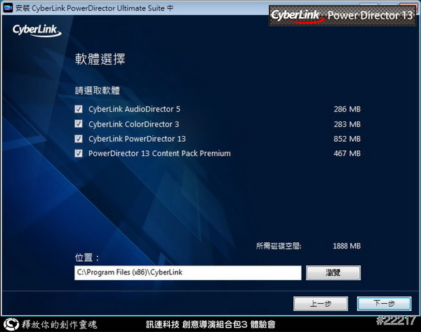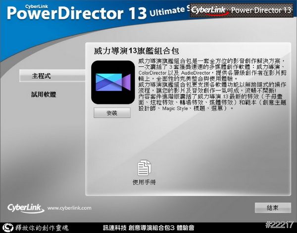 ▲Power Director13的安裝主畫面,這是主程式-威力導演13旗艦組合包的部份。