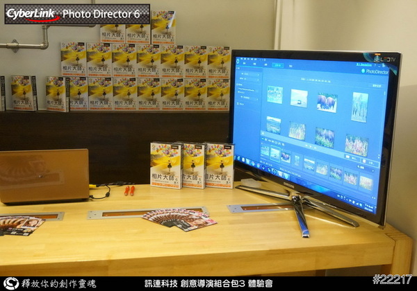 ▲Photo Director6的展示區,後方滿滿的Photo Director6就是體驗會後要贈送給網友來試用的小禮物。(真的發禮物不手軟呀)