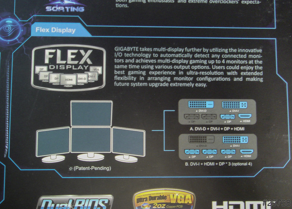 ↑回到包裝盒一看,其實6個接孔只能選擇4個使用,GTX-980好像也只有技嘉這麼設計,這一來給使用者有更多的選擇。