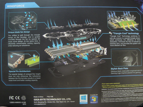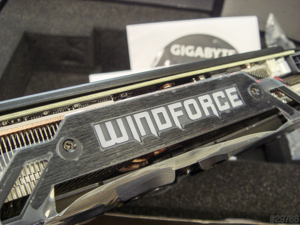 ↑值得注意的是,這張技嘉的980拿起來真的很重,主要是因為晶片上面貼了一層Triangle Cool實心散熱片(照片右上角)