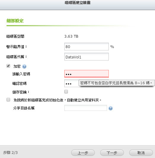 ▲如果想做磁碟加密,最好是NAS一買來就弄,不然就得就新格式化。