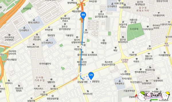 從地鐵三號線「狹鷗亭站」3 號出口後
