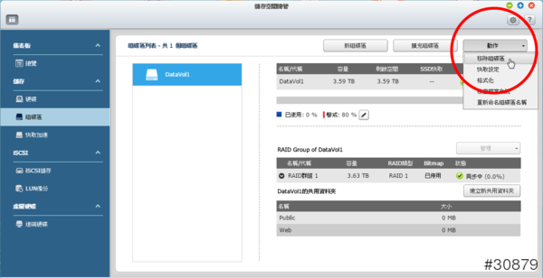 如果真的不小心和我一樣選擇了「快速安裝」,那就要進入「控制台」的「儲存空間總管」選取「磁碟區」,接著選取「動作」裡的「移除磁碟區」,重新再來一次。