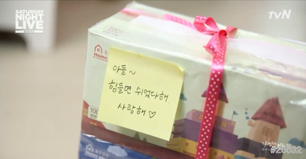 ▲貼心的禮物跟小紙條:兒子啊!很辛苦的話記得休息一下喔!