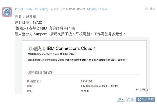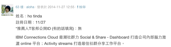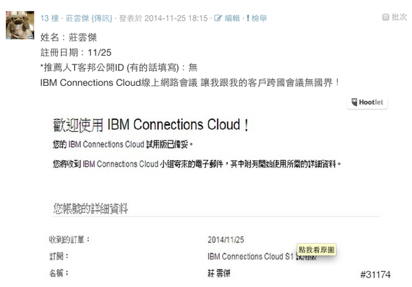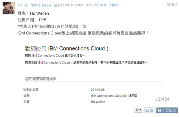 留言範例:IBM Connections Cloud線上網路會議 讓我跟我的客戶跨國會議無國界!