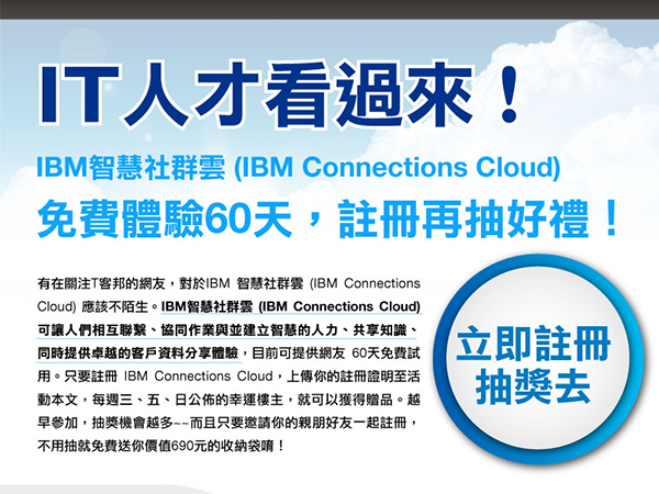 註冊IBM Connections Cloud,防潮箱、SSD硬碟送給你