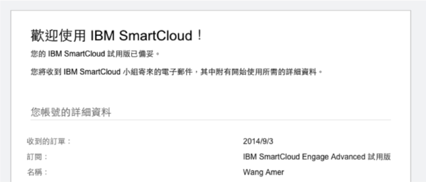 Step 1至IBM Connections Cloud網站註冊體驗帳號,註冊網址:http://www.ibm.com/cloud-computing/social/tw/zh/