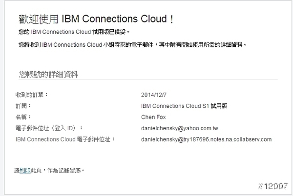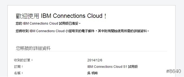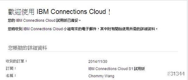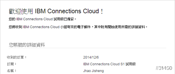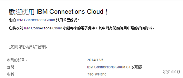 Step 1IBM Connections Cloud網站註冊體驗帳號,註冊網址:http://www.ibm.com/cloud-computing/social/tw/zh/