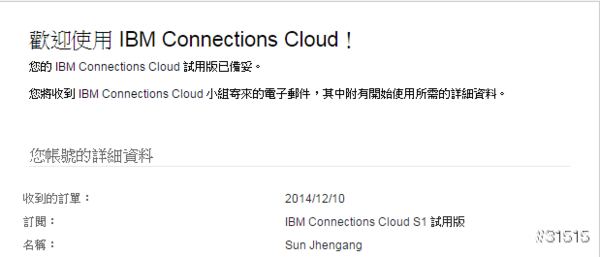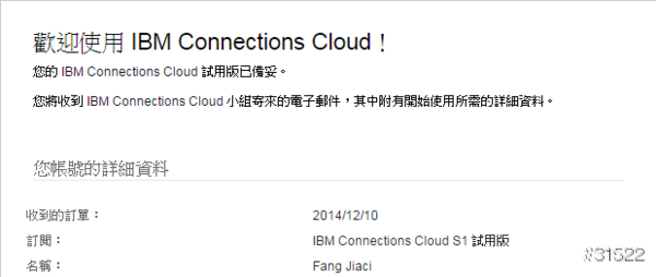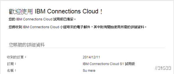 Step 1IBM Connections Cloud網站註冊體驗帳號,註冊網址:http://www.ibm.com/cloud-computing/social/tw/zh/
