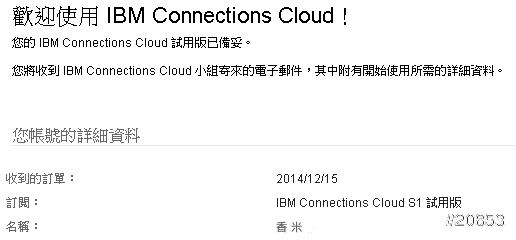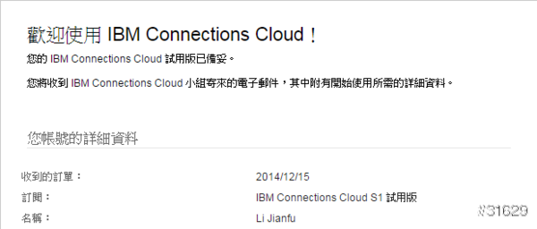 Step 1至IBM Connections Cloud網站註冊體驗帳號,註冊網址:http://www.ibm.com/cloud-computing/social/tw/zh/