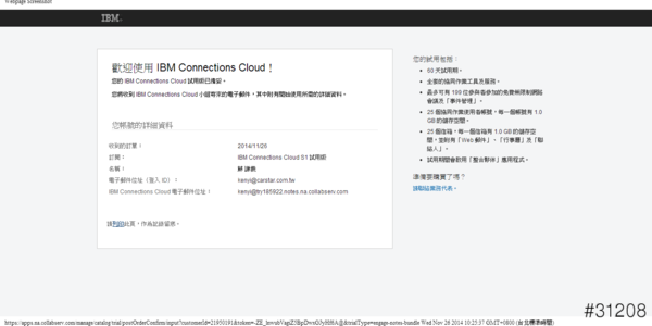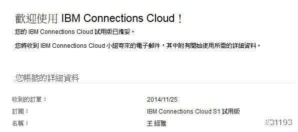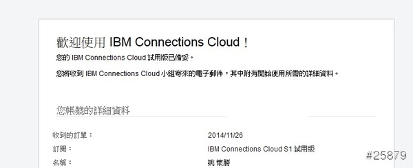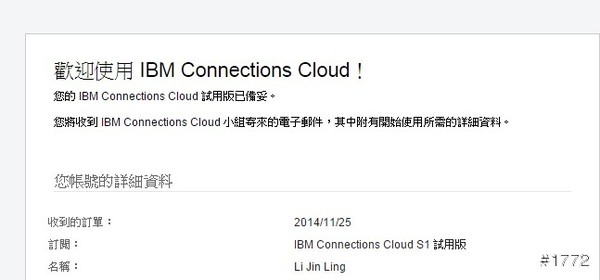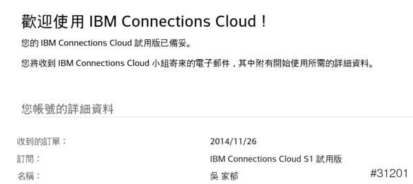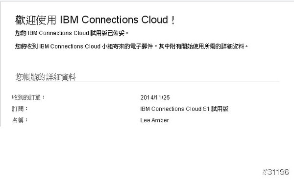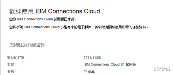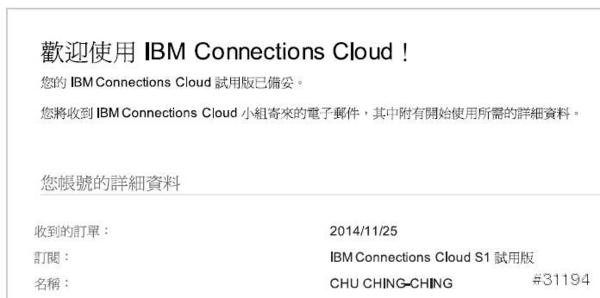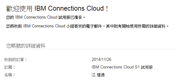 Step 1IBM Connections Cloud網站註冊體驗帳號,註冊網址:http://www.ibm.com/cloud-computing/social/tw/zh/