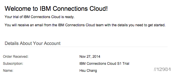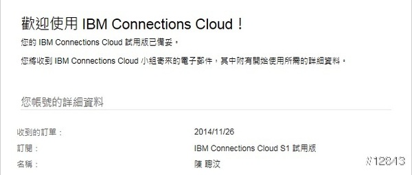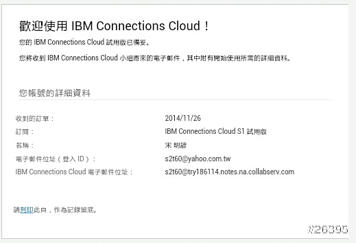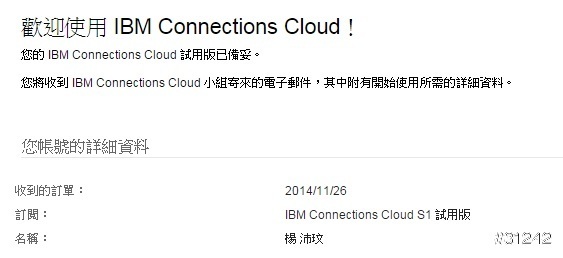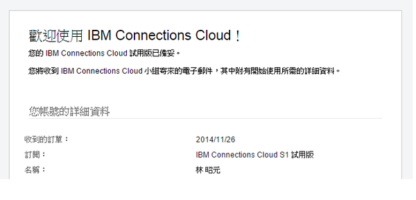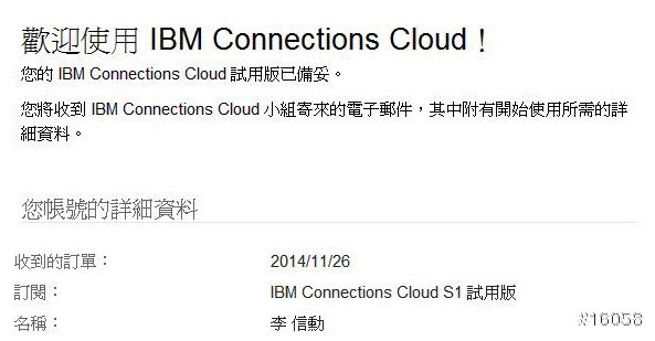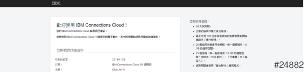 Step 1IBM Connections Cloud網站註冊體驗帳號,註冊網址:http://www.ibm.com/cloud-computing/social/tw/zh/