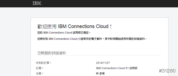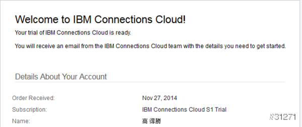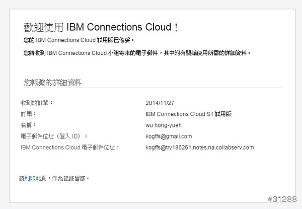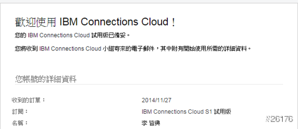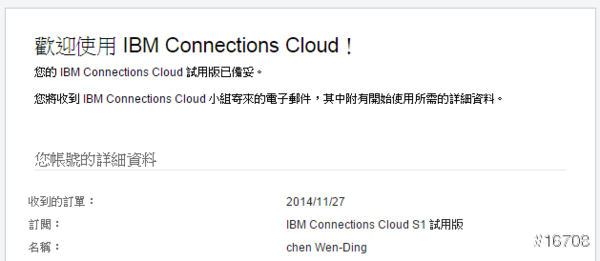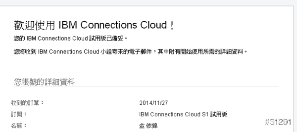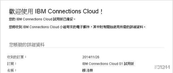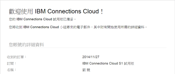 Step 1IBM Connections Cloud網站註冊體驗帳號,註冊網址:http://www.ibm.com/cloud-computing/social/tw/zh/