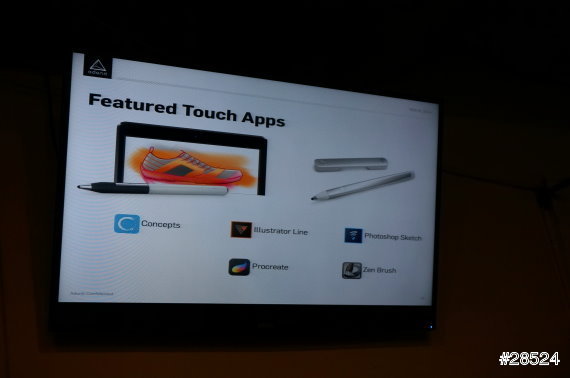 ◎Adobe Ink 為三面液壓式鋁合金觸控筆,專為iPad iOS7 操作系統而設。可運用 Adobe Ink 控制、繪畫並連接至 Creative Cloud, Adobe Ink 是以 Adonit Pixelpoint 科技製造,觸控筆尖能感應壓力,Ink有 2048 段感壓能力,外型是經過人體工學設計的類似三角形設計,手握時可平衡至舒適的位置。,續航力Paul Burnett表示有10 小時,筆上面的按鍵可快速呼叫功能,也可方便快速的在 Adobe app 之間複製、剪下、貼上。簡單透過平板來設計或修圖快速功能選單充電座,筆可放入其中再透過USB充電,上面也有燈號顯示。