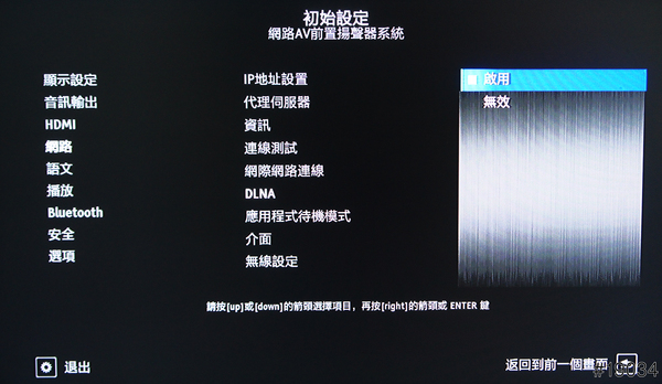 接著就來介紹Pioneer SBX-N700最讓人躍躍欲試的就是DLNA功能,畢竟這是最快速方式把行動裝置裡影音內容無線投射到電視的方法。在使用DLNA功能要先確定Pioneer SBX-N700已呈連接網路狀態,確定後再把DLNA功能啟用。