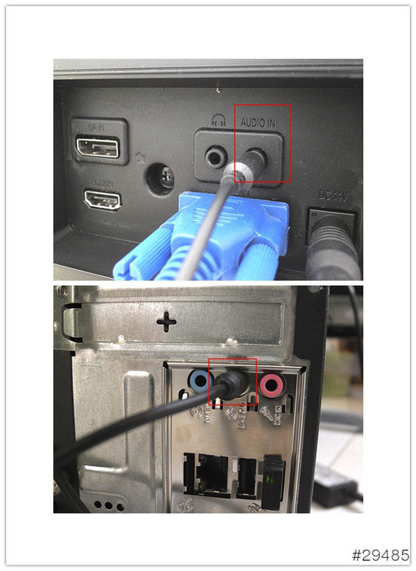 然后用这根音频线连接机箱声卡的输出口和显示器的音频输入口即可,这样显示器就能出声啦