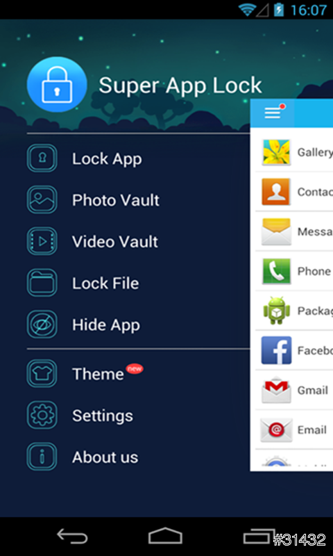 1) 支持:鎖應用,遊戲,支付,鎖圖片,相冊,視頻,檔,便簽,隱藏應用等等;