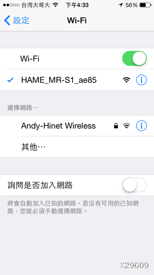 2. 主機開機好後,就可打開手機的Wifi,可以看HAME-MR-S1-XXX的網路名稱,當然就是連接它囉。