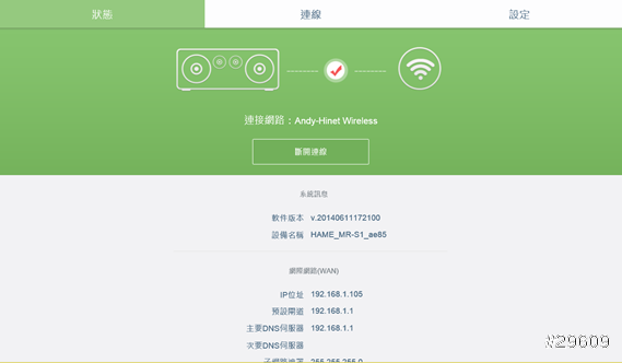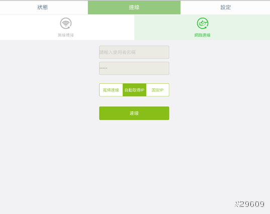 進入管理畫面,在連線頁籤,有無線連接和網路連接
