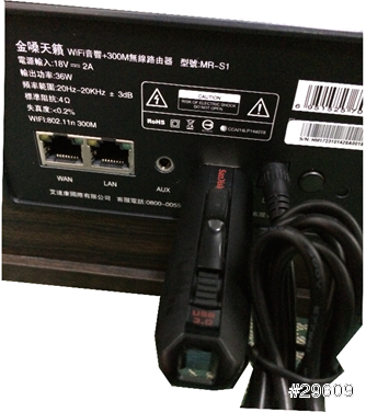 將已存有音樂檔或影像檔的USB ,插入後方的USB孔,就可直接撥放音樂,並可按上方控鍵的按鈕。由於無法看到歌曲的資訊,也無法列出所有歌曲清單,因此還有另一個方式透過【華美雲】APP來改善這部份。
