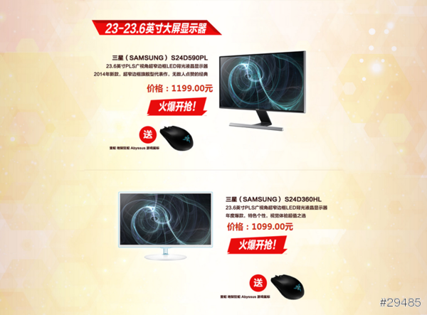 活动内容就是在12月10日---12月12日之间,买三星大屏显示器就送雷蛇顶级游戏装备,这是很大的诱惑哦,来看看都有什么型号三星显示器,有木有你中意的