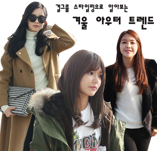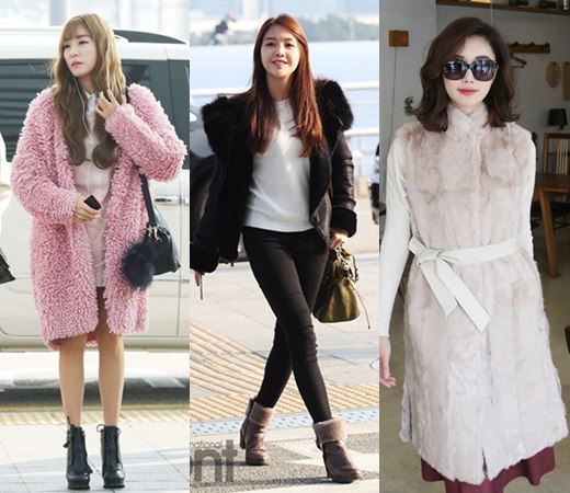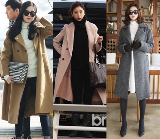 沒有毛茸茸的裝飾也相當好看的長版大衣,絕對也是冬季商品中的常客。像是少女時代的徐玄身穿的咖啡色大衣就是基本款,而 Girl's Day 素珍的粉色系大衣穿起來也會非常有氣質。灰色的大衣也是不容易失敗的安全款,不過像這樣的長版大衣如果是小個子的女生,可能就要考慮一下了,不然就是要搭個高跟鞋,這樣比例才不會變得很奇怪。