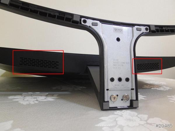 如图,大家都看见了在显示器的底部两侧都有内置音响,这样更能提供“包裹式”的音效,全面提升娱乐影音水平