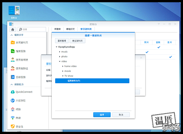 copy上去 video 目錄下的各項資料夾,Synology DS215j 是不會馬上呈現在前台可以使用的喔~ 你還需要做些資料夾的對應設定才行~