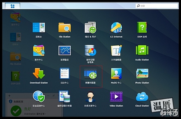 你到 Synology DS215j 的左上角直接選快速選單(又教你一個快速找到這設定畫面的地方) “媒體伺服器" 功能。